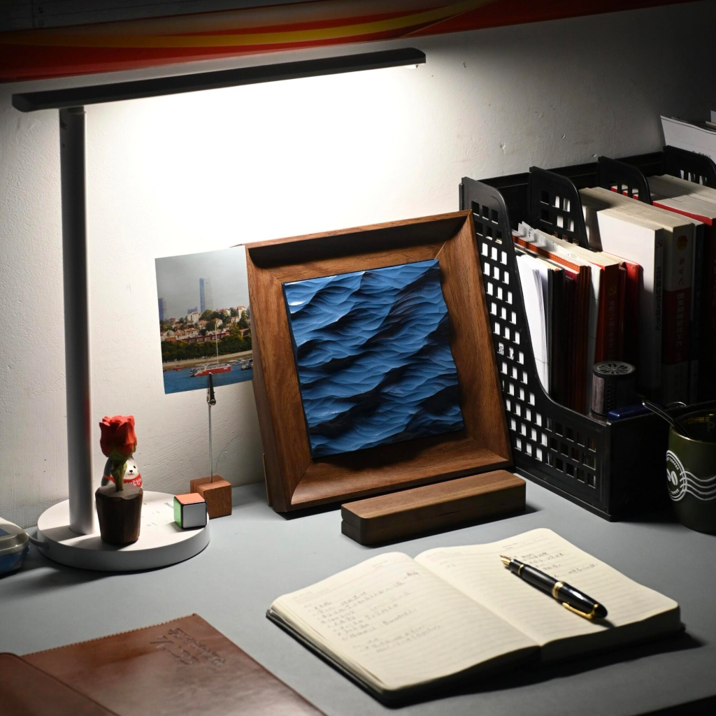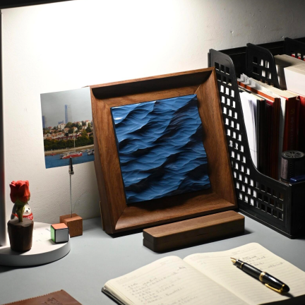 The outer frame is crafted from real wood — not just for structure, but as an essential part of the artwork’s aesthetic.Its smooth, organic grain pairs beautifully with the carved waves, giving the piece a more refined and cohesive look.